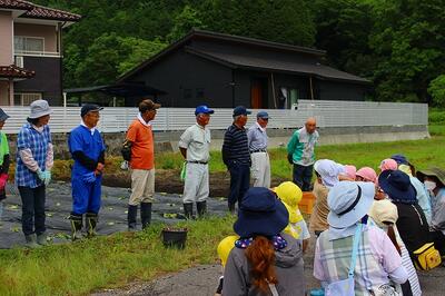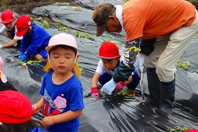 菅生・上熊谷の高齢者クラブから10名の方々においでいただき、1.2年生が、熊谷認定こども園の園児たちと一緒にサツマイモの苗80本を植えました。子ども達は、しっかりお世話をして育てようと張り切っています。ご指導いただきました皆様、大変お世話になりました。