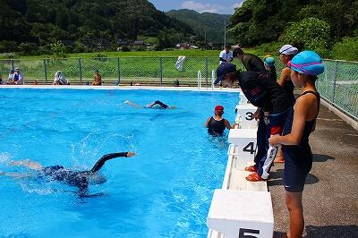 記録会終了後、5.6年生は着衣泳も体験しました。