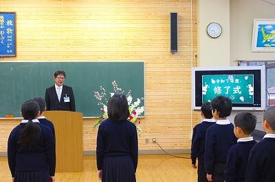 多目的室で終業式を行いました。2学期の間、インフルエンザに感染した児童は一人もおらず、みんな元気に学校生活を送ることができました。短い冬休みですが、しっかり楽しみ、しっかり学んでほしいと思います。1月6日には、また、元気に登校してきてくださいね。